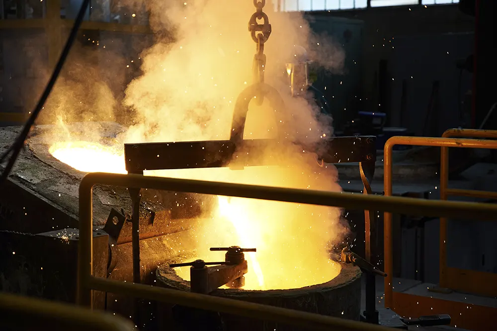 Lo stabilimento ospita due fonderie di acciaio — una statica e una centrifuga — dotate di impianti avanzati per la fusione e la lavorazione di materiali ad alte prestazioni. Completa la struttura un’officina meccanica specializzata in lavorazioni di precisione, un reparto per controlli non distruttivi (NDT) che utilizza tecnologie all’avanguardia per il monitoraggio della qualità, un laboratorio interno per prove meccaniche su materiali e componenti e un bunker per esami radiografici con finalità di controllo non invasivo sui prodotti finiti.